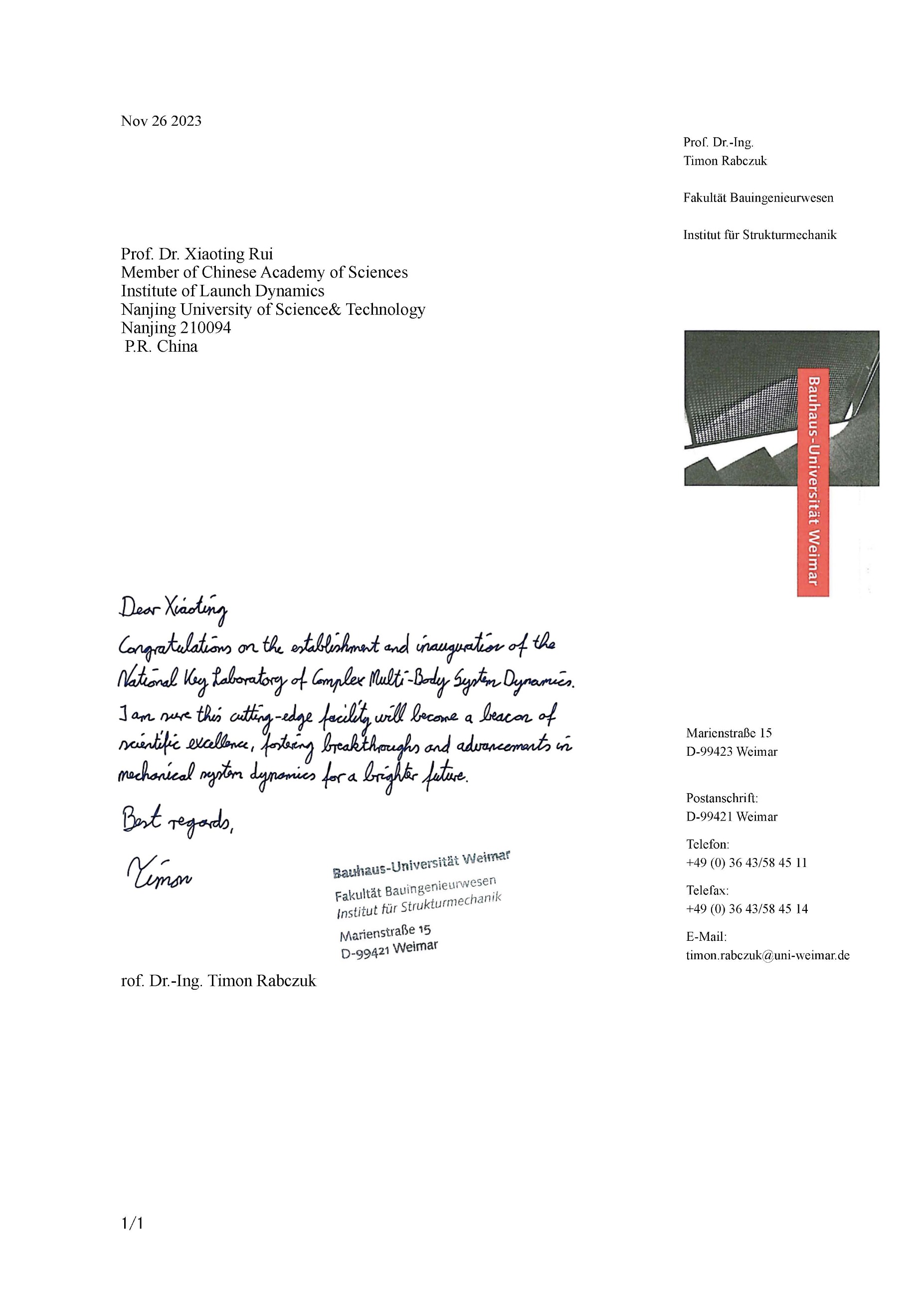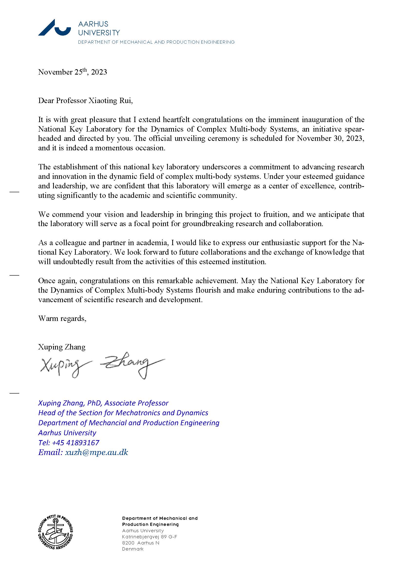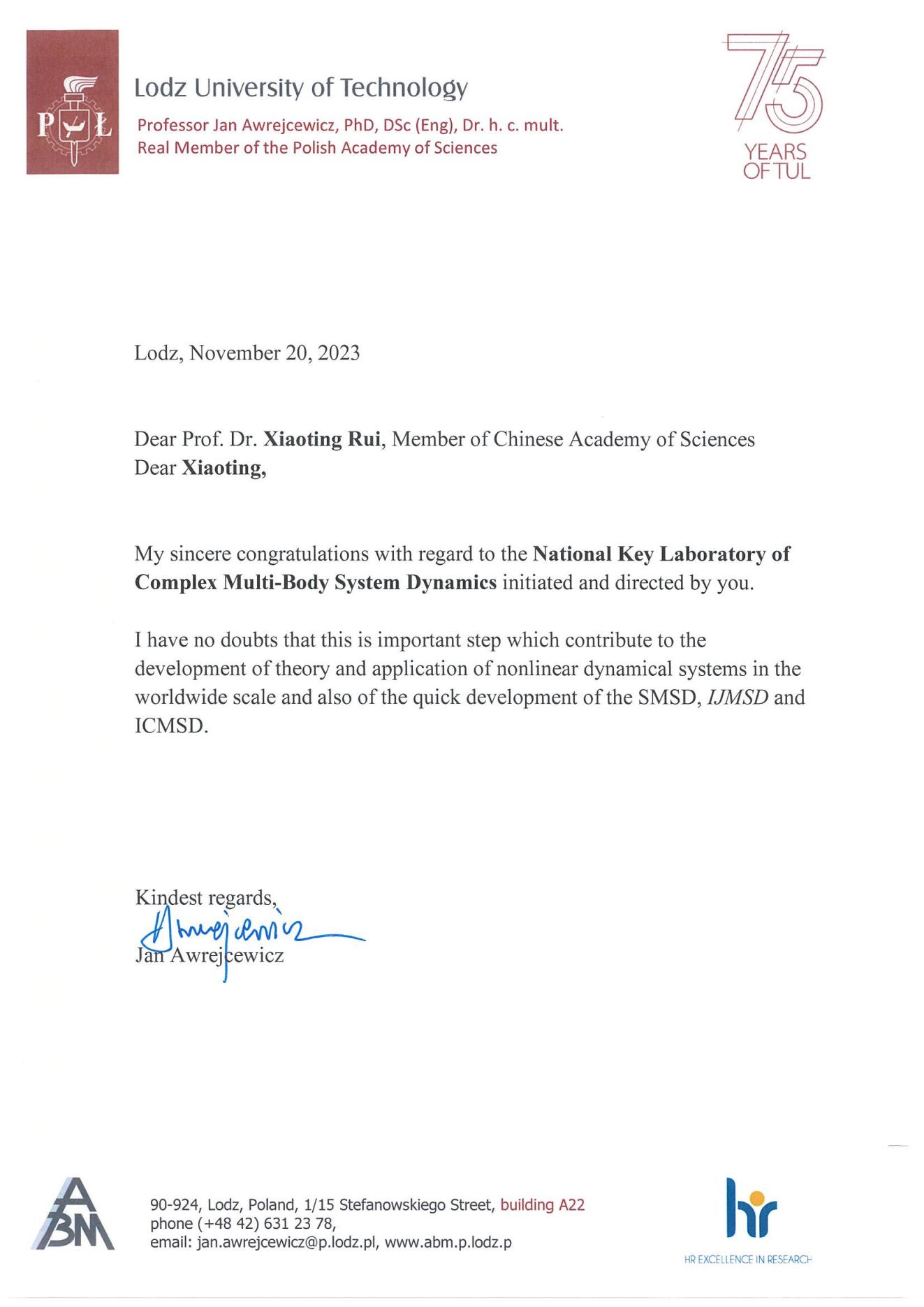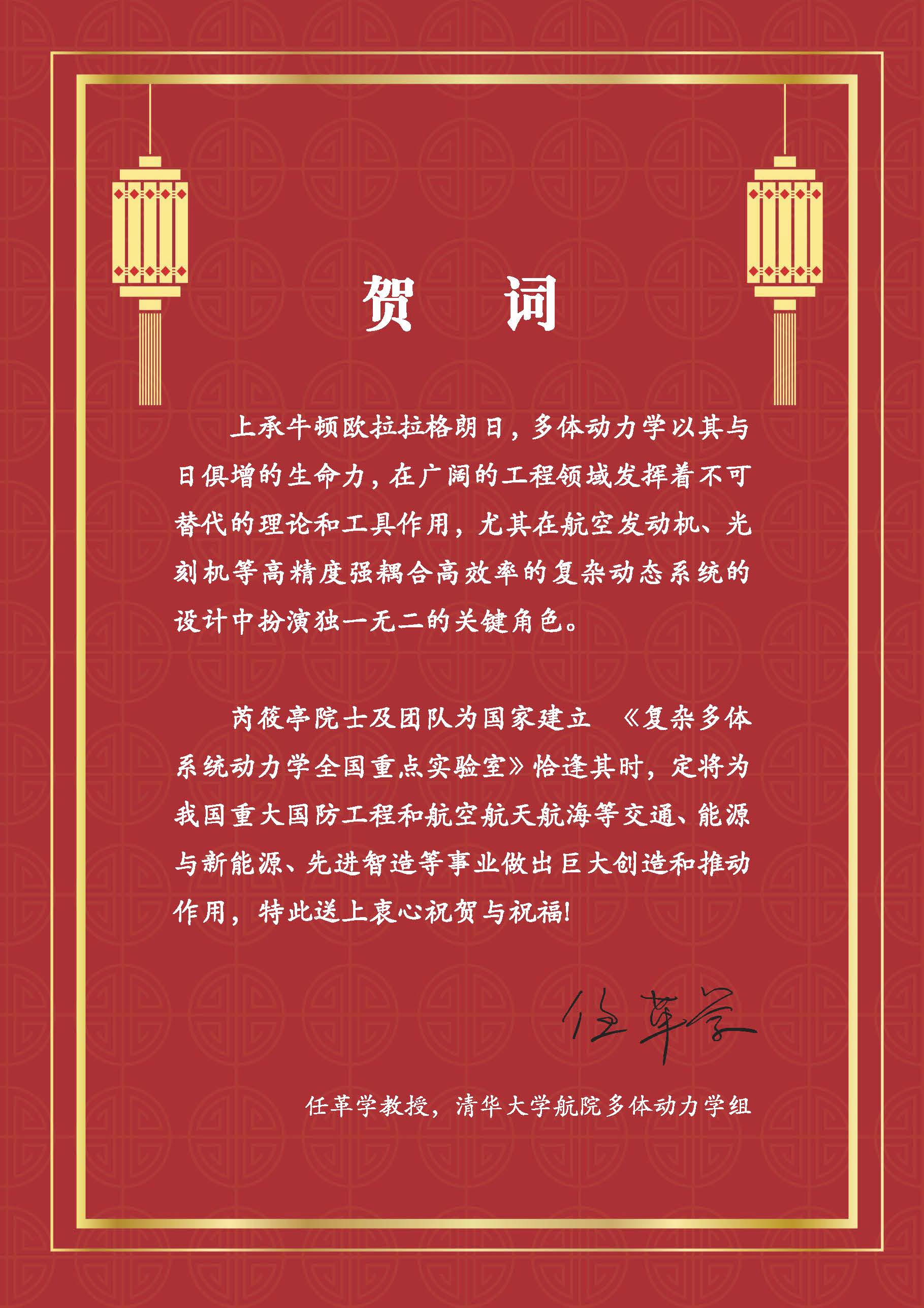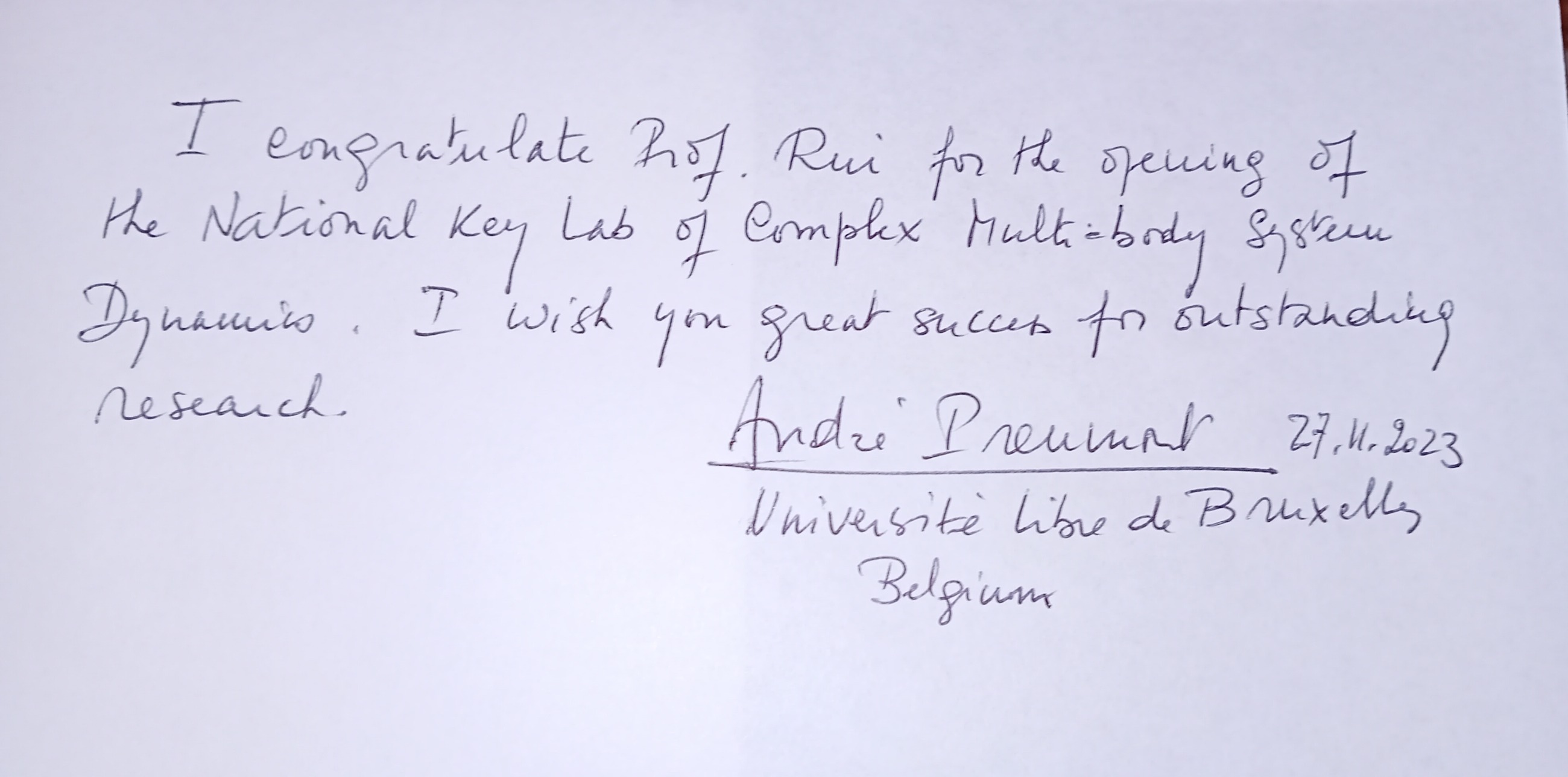 Nearly forty esteemed scientists extended their heartfelt congratulations on the founding of the National Key Laboratory of Complex Multibody System Dynamics. Many thanks for their strong support! We would also like to express our sincere gratitude to everyone who contributed to the establishment of the Key Laboratory.